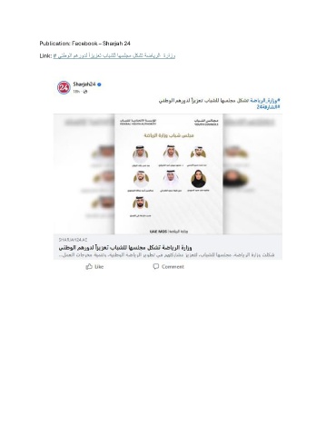 Publication: Facebook – Sharjah 24 Link: # ينطولا مهرودل ًازيزعت بابشلل اهسلجم لكشت ةضايرلا_ةرازو