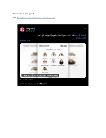 Publication: X – Sharjah 24 Link: # ينطولا مهرودل ًازيزعت بابشلل اهسلجم لكشت ةضايرلا_ةرازو