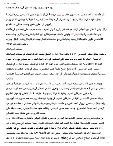 ﻖﯾﻘﺣﺗ ﻲﻓ ةرازوﻟا دوﮭﺟ سﻠﺟﻣﻟا مﻋدﯾ ﺎﻣﻛ ،تارﺎﻣﻹا ﺔﻟودﻟ لﺿﻓأ ﻲﺿﺎﯾر لﺑﻘﺗﺳﻣ لﺟأ نﻣ «2031 تارﺎﻣﻹا
