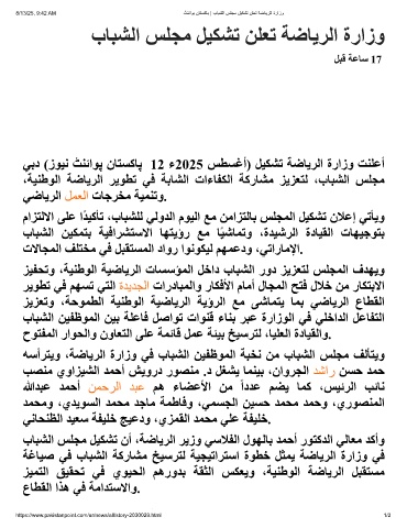 8/13/25, 9:42 AM ٹﻧﺋاوﺑ نﺎﺗﺳﮐﺎﺑ | بﺎﺑﺷﻟا سﻠﺟﻣ لﯾﻛﺷﺗ نﻠﻌﺗ ﺔﺿﺎﯾرﻟا ةرازو