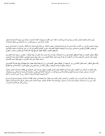 8/13/25, 9:40 AM بﺎﺑﺷﻟا سﻠﺟﻣ لﯾﻛﺷﺗ نﻠﻌﺗ ﺔﺿﺎﯾرﻟا ةرازو