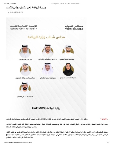 8/13/25, 9:40 AM 7 تارﺎﻣﻻا | ﺔﺿﺎﯾر | بﺎﺑﺷﻟا سﻠﺟﻣ لﯾﻛﺷﺗ نﻠﻌﺗ ﺔﺿﺎﯾرﻟا ةرازو