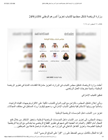 8/13/25, 9:39 AM 24ﺔﻗرﺎﺷﻟا# ﻲﻧطوﻟا مھرودﻟ ًازﯾزﻌﺗ بﺎﺑﺷﻠﻟ ﺎﮭﺳﻠﺟﻣ لﻛﺷﺗ ﺔﺿﺎﯾرﻟا ةرازو | 24 ﺔﻗرﺎﺷﻟا