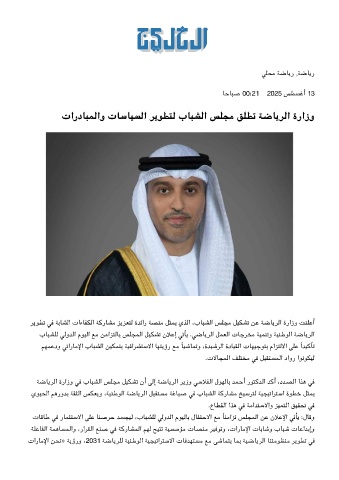 ﺮﻳﻮﻄﺗ ﻓ ﺔﺑﺎﺸﻟا تاءﺎﻔﻟا ﺔﻛرﺎﺸﻣ ﺰﻳﺰﻌﺘﻟ ةﺪﺋار ﺔﺼﻨﻣ ﻞﺜﻤﻳ يﺬﻟا ،بﺎﺒﺸﻟا ﺲﻠﺠﻣ ﻞﻴﺸﺗ ﻦﻋ ﺔﺿﺎﻳﺮﻟا ةرازو ﺖﻨﻠﻋأ
