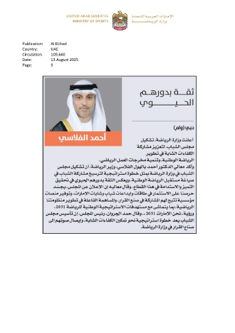 Publication: Al Etihad Country: UAE Circulation: 109,640 Date: 13 August 2025 Page: 5