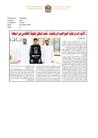 Publication: Al Wahda Country: UAE Circulation: 19,400 Date: 20 August 2025 Page: 11