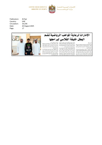 Publication: Al Fajr Country: UAE Circulation: 34,596 Date: 20 August 2025 Page: 17