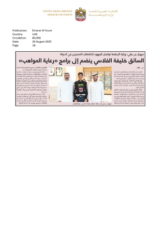Publication: Emarat Al Youm Country: UAE Circulation: 80,000 Date: 20 August 2025 Page: 18