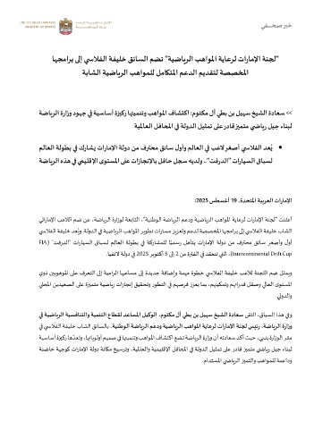 يتاراملإا بعلالا مض نع ،ةضايرلا ةرازول ةعباتلا ، "ةينطولا ةضايرلا معدو ةيضايرلا بهاولما ةياعرل تاراملإا ةنجل " تنلعأ