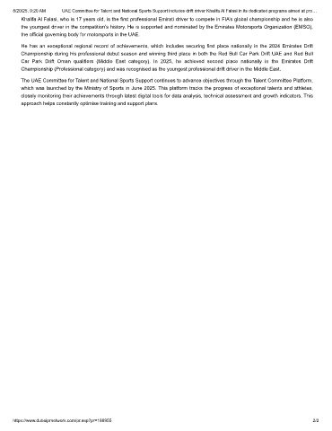 8/20/25, 9:20 AM UAE Committee for Talent and National Sports Support includes drift driver Khalifa Al Falasi in its dedicated programs aimed at pro…