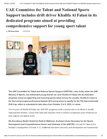 8/20/25, 9:24 AM UAE Committee for Talent and National Sports Support includes drift driver Khalifa Al Falasi in its dedicated programs aimed at pro…