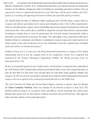 8/20/25, 9:25 AM UAE Committee for Talent and National Sports Support includes drift driver Khalifa Al Falasi in its dedicated programs aimed at pro…