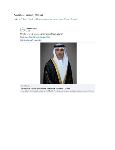 Publication: Facebook – Al Etihad Link: Al Etihad: Ministry of Sports announces formation of Youth Council