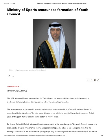 8/13/25, 11:33 AM Ministry of Sports announces formation of Youth Council - Aletihad News Center