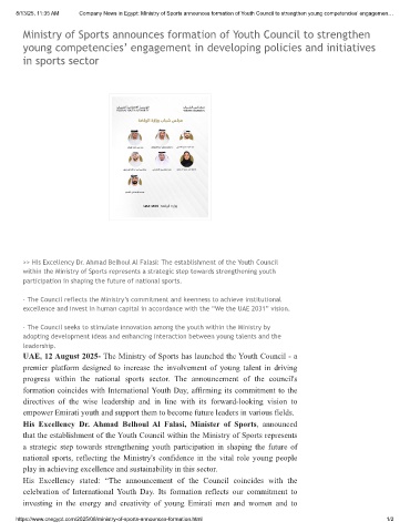 8/13/25, 11:35 AM Company News in Egypt: Ministry of Sports announces formation of Youth Council to strengthen young competencies’ engagemen…