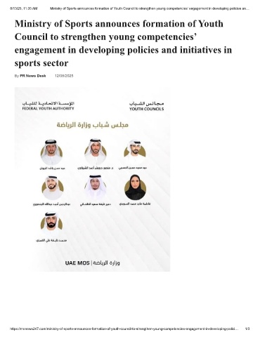8/13/25, 11:35 AM Ministry of Sports announces formation of Youth Council to strengthen young competencies’ engagement in developing policies an…