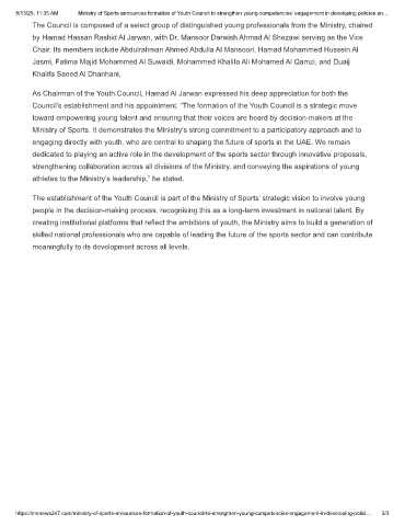 8/13/25, 11:35 AM Ministry of Sports announces formation of Youth Council to strengthen young competencies’ engagement in developing policies an…