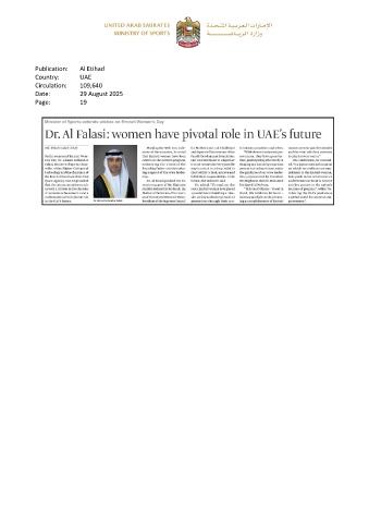 Publication: Al Etihad Country: UAE Circulation: 109,640 Date: 29 August 2025 Page: 19