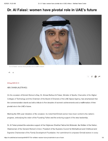 8/29/25, 10:25 AM Dr. Al Falasi: women have pivotal role in UAE’s future - Aletihad News Center