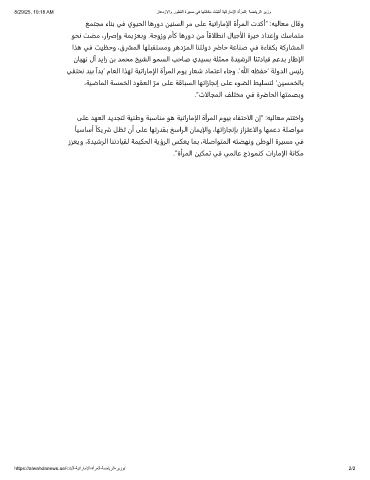 ﻲﻔﺘﺤﻧ ﺪﻴﺑ ًاﺪﻳ’ مﺎﻌﻟا اﺬﻬﻟ ﺔﻴﺗارﺎﻣإلا ةأﺮﻤﻟا مﻮﻳ رﺎﻌﺷ دﺎﻤﺘﻋا ءﺎﺟو .‘ﷲ ﻪﻈﻔﺣ’ ﺔﻟوﺪﻟا ﺲﻴﺋر