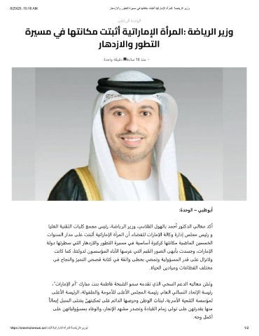 https://alwahdanews.ae/تﺗﺑﺛأ-ﺔﯾﺗارﺎﻣﻹا-ةأرﻣﻟا-ﺔﺿﺎﯾرﻟا-رﯾزو/ 1/2