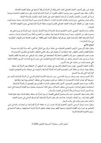 ﻪﻴﻓ ﻔﺘﺤﻧ مﻮﻳ ﻮﻫ ةأﺮﻤﻟا مﻮﻳ» :(عاﺮﺷ) لﺎﻤﻋﻷا ةدﺎﻳﺮﻟ ﺔﻗرﺎﺸﻟا ﺰﻛﺮﻤﻟ يﺬﻴﻔﻨﺘﻟا ﺮﻳﺪﻤﻟا ،ﻤﻴﻌﻨﻟا ﻒﻴﺤﻟﺎﺑ ةرﺎﺳ ﺖﻟﺎﻗو