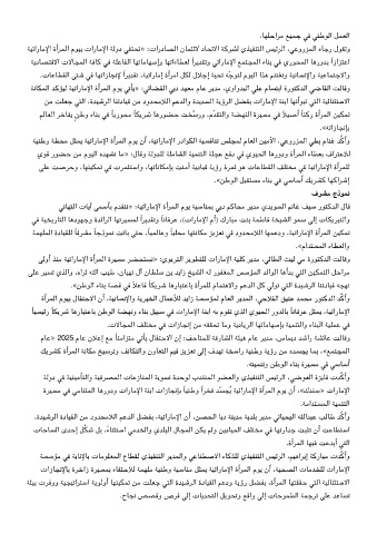 ةﺮﻴﺴﻣ ﻓ ﻣﺎﻨﺘﻤﻟا ﺎﻫرودو تارﺎﻣﻹا ﺔﻨﺑا تازﺎﺠﻧﺈﺑ ًﺎﻴﻨﻃو ًاﺮﺨﻓ ﺪﺴﺠﻳ ﺔﻴﺗارﺎﻣﻹا ةأﺮﻤﻟا مﻮﻳ نأ ،«كﺪﻨﺳ» تارﺎﻣﻹا