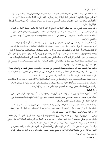 ﺔﻗﺎﺒﺴﻟا تازﺎﺠﻧﻹا ﻖﻴﻘﺤﺗ ﻞﺻاﻮﺗ ﺔﻴﺗارﺎﻣﻹا ةأﺮﻤﻟا نأ ،مﻼﻋﻺﻟ تارﺎﻣﻹا ﺲﻠﺠﻣ مﺎﻋ ﻦﻴﻣأ ،ﺤﺸﻟا ﺪﻴﻌﺳ ﺪﻤﺤﻣ ﺪﻛأو