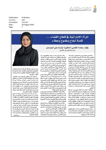 Publication: Al Khaleej Country: UAE Circulation: 121,141 Date: 28 August 2025 Page: 7