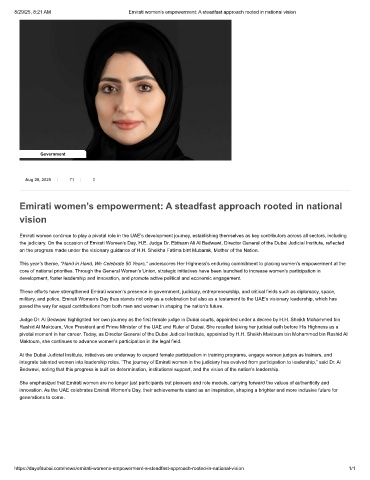 8/29/25, 8:21 AM Emirati women’s empowerment: A steadfast approach rooted in national vision