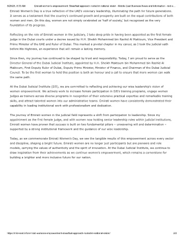 8/28/25, 8:33 AM Emirati women’s empowerment: Steadfast approach rooted in national vision - Middle East Business News and Information - mid-e…