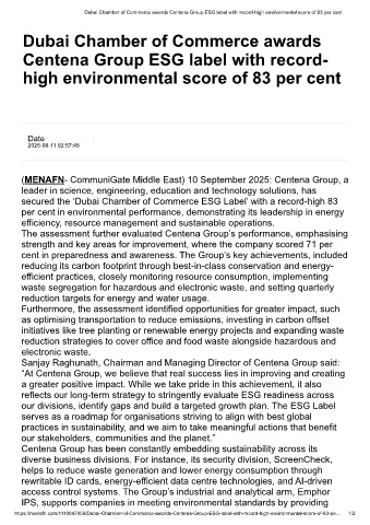 https://menafn.com/1110047058/Dubai-Chamber-of-Commerce-awards-Centena-Group-ESG-label-with-record-high-environmental-score-of-83-pe… 1/2