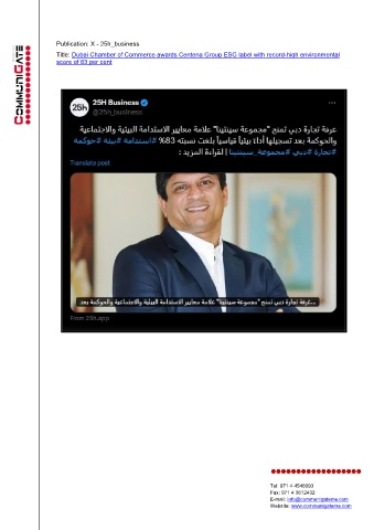 Title: Dubai Chamber of Commerce awards Centena Group ESG label with record-high environmental