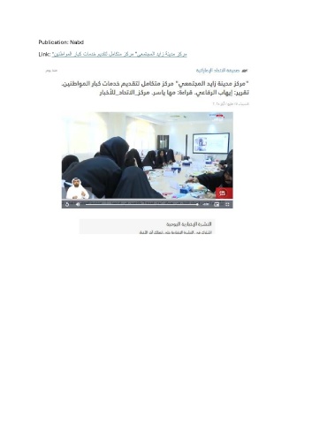 Publication: Nabd Link: "نينطاوملا رابك تامدخ ميدقتل لماكتم زكرم "يعمتجملا دياز ةنيدم زكرم