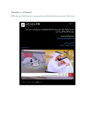 Publication: X – Al Etihad AE Link: بيجت ةيرسلأا ةيمنتلا ةسسؤم ماع ريدم ،يثيمرلا ميرم ؟نينطاوملا رابك ةايح ةدوج ززعت فيك .."انتكرب" ةردابم
