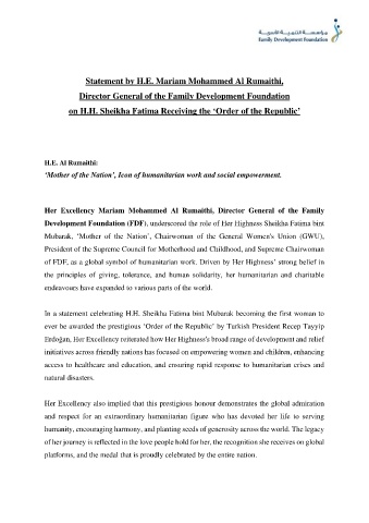 Development Foundation (FDF), underscored the role of Her Highness Sheikha Fatima bint