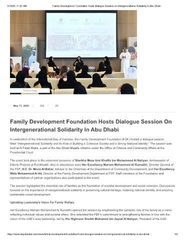 5/19/25, 11:21 AM Family Development Foundation Hosts Dialogue Session on Intergenerational Solidarity in Abu Dhabi