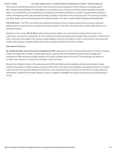 5/19/25, 11:22 AM FDF holds a dialogue session in conjunction with the International Day of Families - Middle East News 247