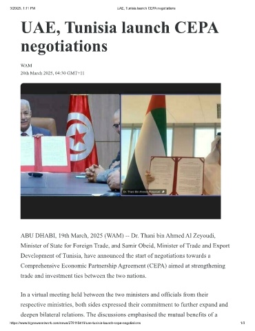 3/20/25, 1:11 PM UAE, Tunisia launch CEPA negotiations