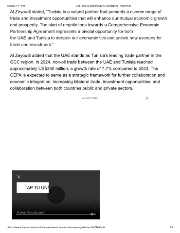 3/20/25, 1:11 PM UAE, Tunisia Launch CEPA Negotiations - UrduPoint