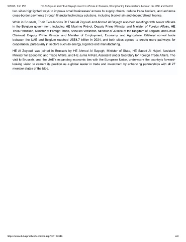 3/20/25, 1:21 PM HE Al Zeyoudi and HE Al Sayegh meet EU officials in Brussels, Strengthening trade relations between the UAE and the EU