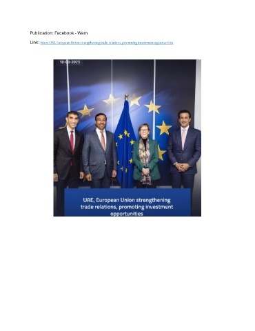 Publication: Facebook - Wam Link: Wam: UAE, European Union strengthening trade relations, promoting investment opportunities