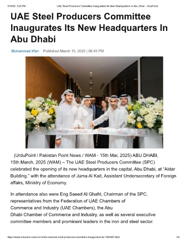 3/18/25, 3:24 PM UAE Steel Producers Committee Inaugurates Its New Headquarters In Abu Dhabi - UrduPoint