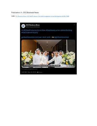 Publication: X – GCC Business News Link: GCC Business News: UAE Steel Producers Committee inaugurates its new headquarters in Abu Dhabi