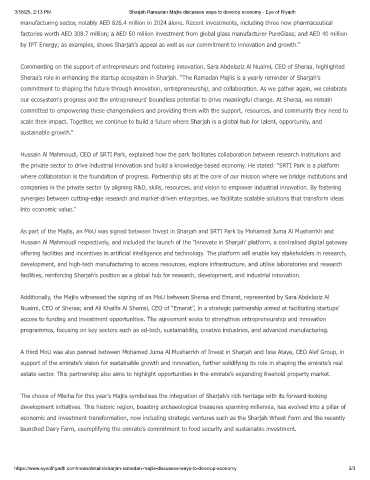 3/18/25, 2:13 PM Sharjah Ramadan Majlis discusses ways to develop economy - Eye of Riyadh