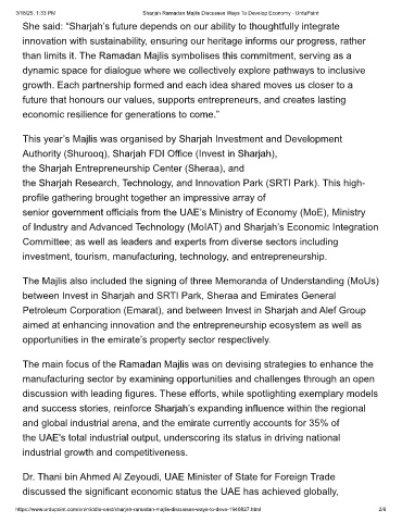 3/18/25, 1:33 PM Sharjah Ramadan Majlis Discusses Ways To Develop Economy - UrduPoint