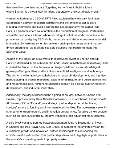 As part of the Majlis, an MoU was signed between Invest in Sharjah and SRTI
