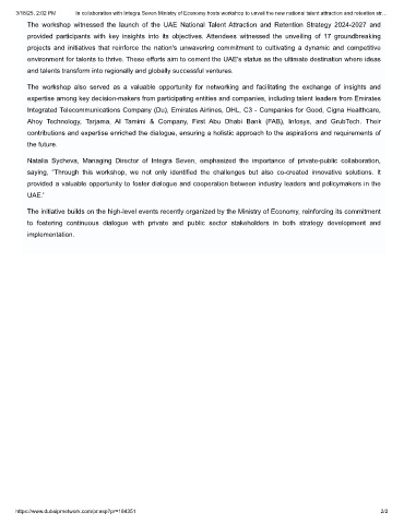 3/18/25, 2:02 PM In collaboration with Integra Seven Ministry of Economy hosts workshop to unveil the new national talent attraction and retention str…