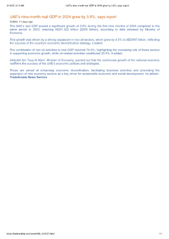 3/18/25, 9:13 AM UAE's nine-month real GDP in 2024 grew by 3.8%, says report
