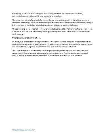 technology. It also enhances cooperation in strategic sectors like aluminium, ceramics,